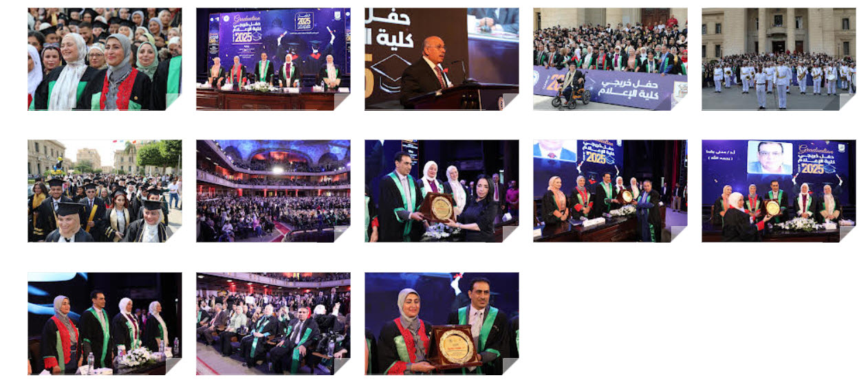 شهدت قاعة الاحتفالات الكبرى بجامعة القاهرة، تحت رعاية د. محمد سامي عبد الصادق رئيس الجامعة حفل خريجي دفعة 2025 بكلية الإعلام، والتي أطلق عليها "دفعة د. أشرف صالح ود.عدلى رضا".