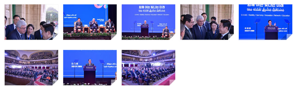 الرئيس الكورى يطرح مبادرة S.H.I.N.E لتحقيق السلام والازدهار والثقافة ومستقبل مشرق للشرق الأوسط وشبه جزيرة كوريا لتحقيق الاستقرار، ويعلن عن تقديم منح دراسية للطلاب المصريين للدراسة فى كوريا في مجالات تكنولوجيا المعلومات والاتصال وبرامج التدريب باعتبار الشباب هم قادة المستقبل نحو عالم أفضل.