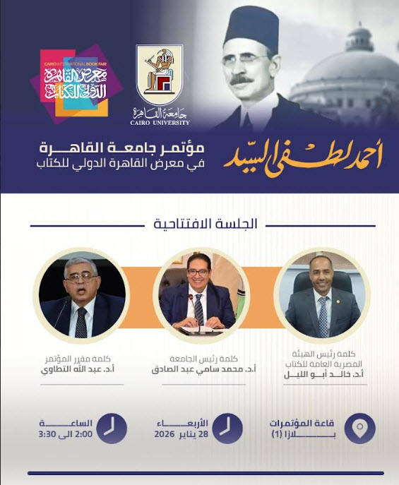 جامعة القاهرة تشارك في تنظيم مؤتمر لإحياء ذكرى استاذ الجيل احمد لطفي السيد ضمن فعاليات معرض القاهرة الدولي للكتاب